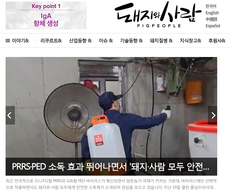 [뉴스보도자료] 돼지와 사람 -PRRS·PED 소독 효과 뛰어나면서 돼지·사람 모두 안전한 소독제 등장